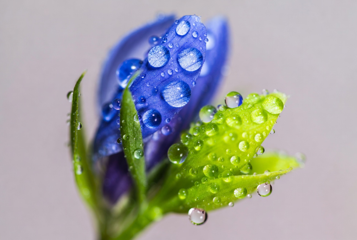beauty, bloom, blue, bud, close-up, detail, droplets, flora, flower, fresh, garden, green, growth, leaf, nature, petal, plant, rain, texture, water