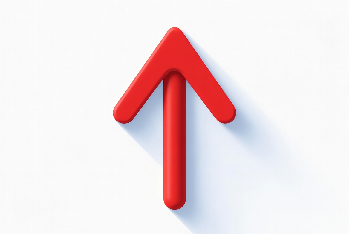 A red arrow points upward on a white surface. The design is simple and clear, conveying direction and movement.