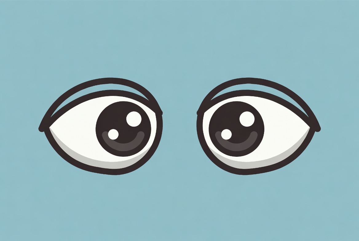 Two large cartoon-style eyes are shown on a solid blue background, creating a playful and vibrant appearance that draws attention.