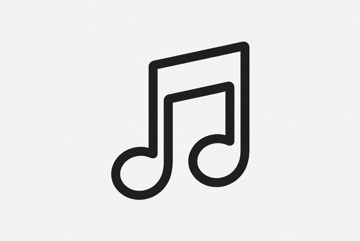 A music note symbol sits on a white background. The note features a curved design with two round ends.