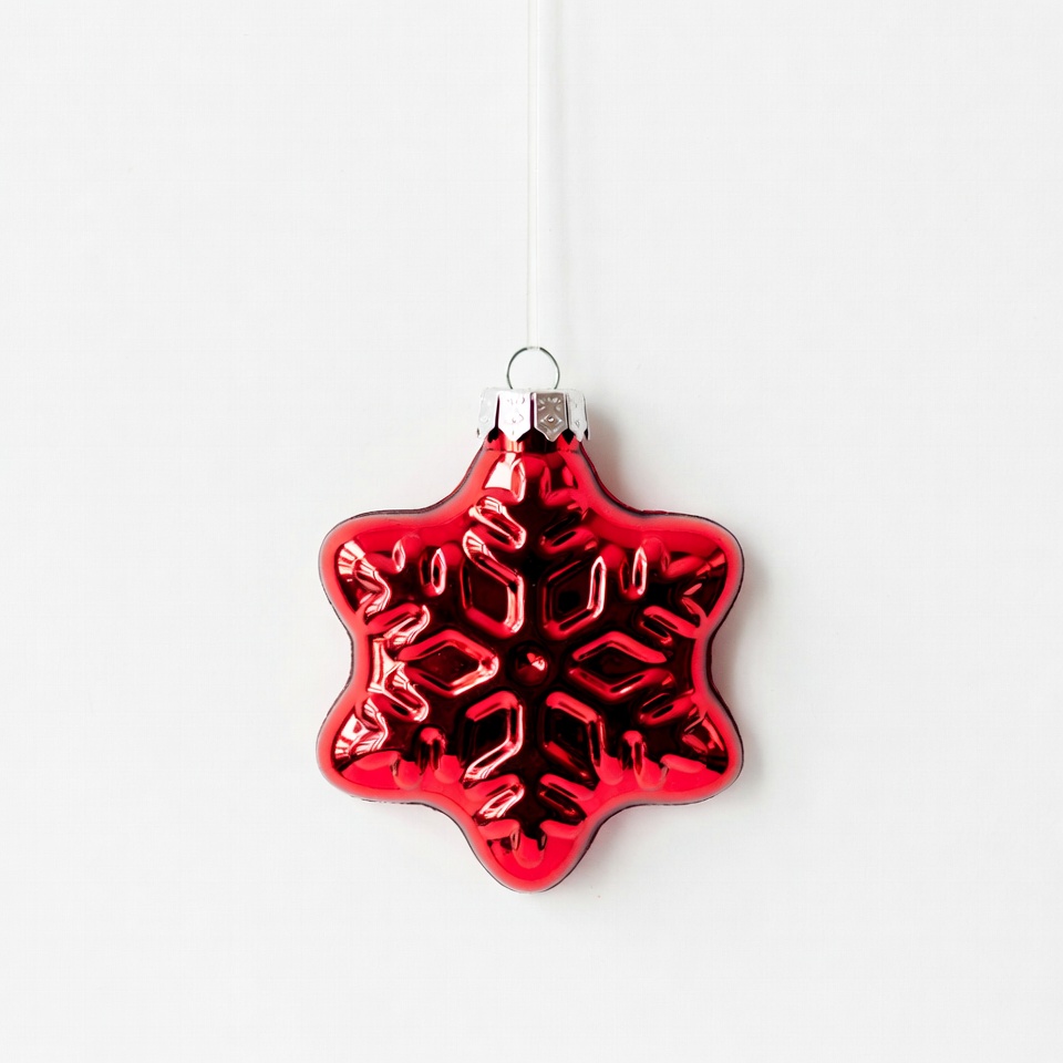 Christmas, bright, color, craft, cute, decoration, design, festive, glass, handmade, hanging, holiday, ornament, red, seasonal, shiny, snowflake, traditional, unique, winter
