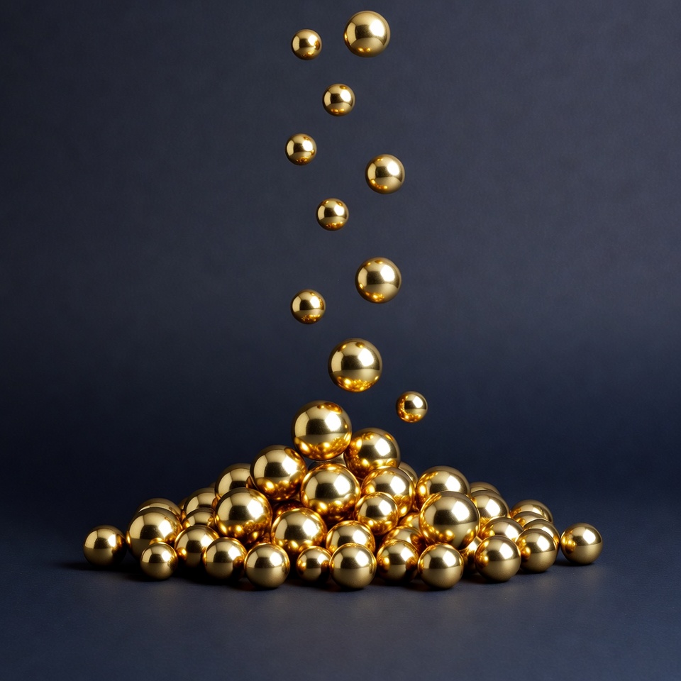 Gold spheres in motion above a cluster