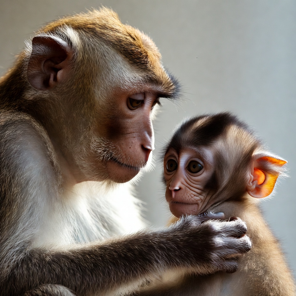 Monkey and baby in close bond