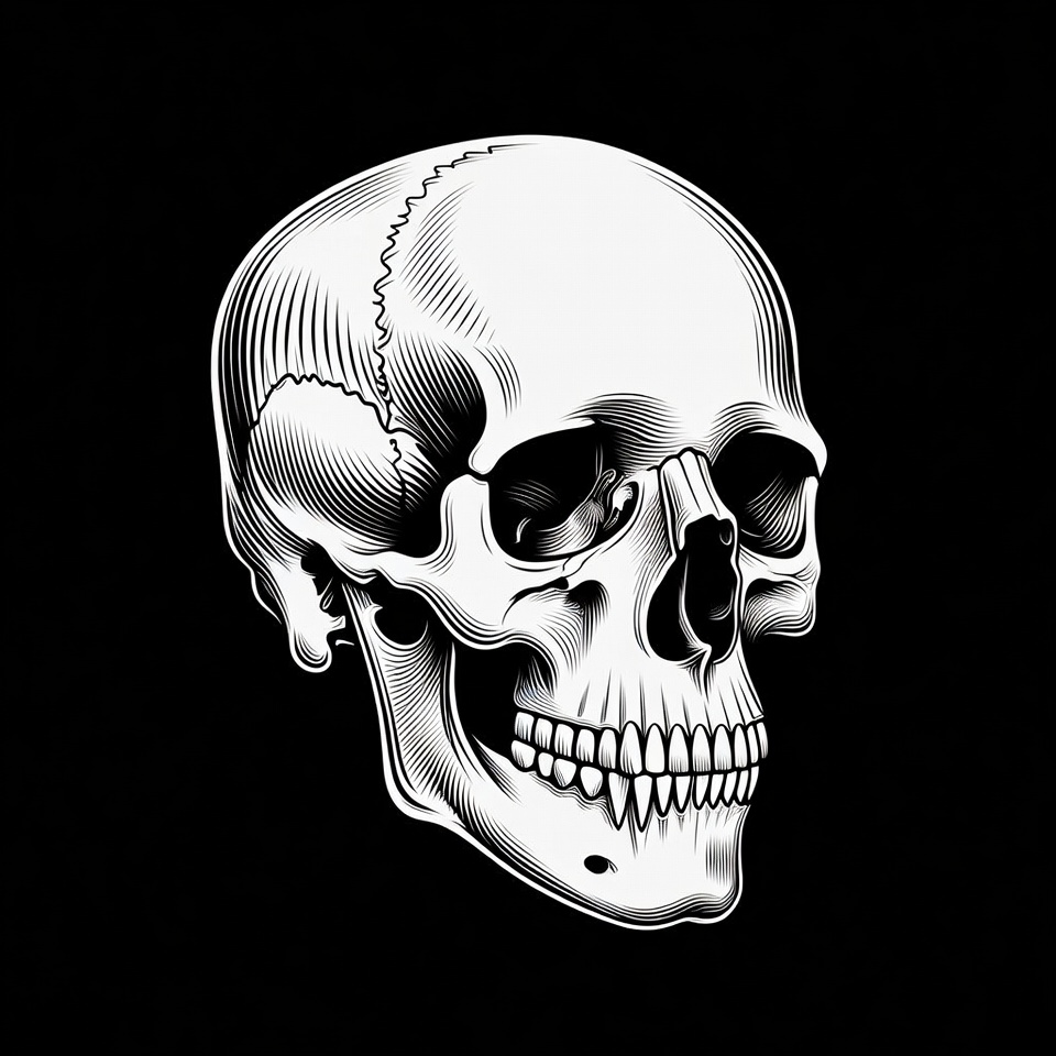 anatomy, art, background, black, bone, contrast, cranium, design, detail, display, feature, graphic, illustration, line, monochrome, shape, skull, structure, teeth, vector