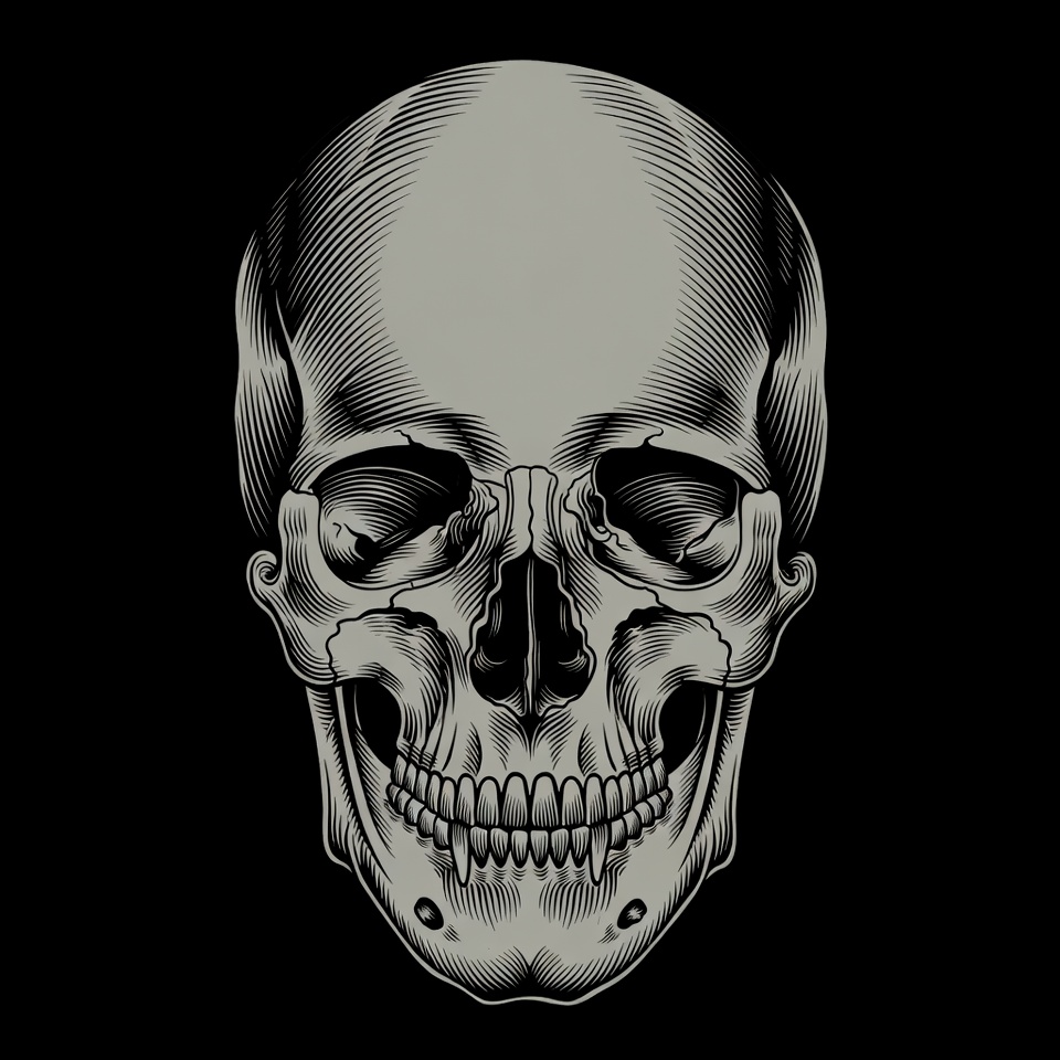 art, black background, bone, death, design, detail, drawing, empty eyes, features, graphic, human anatomy, illustration, jaw, line work, medical, monochrome, shading, skull, structure, teeth