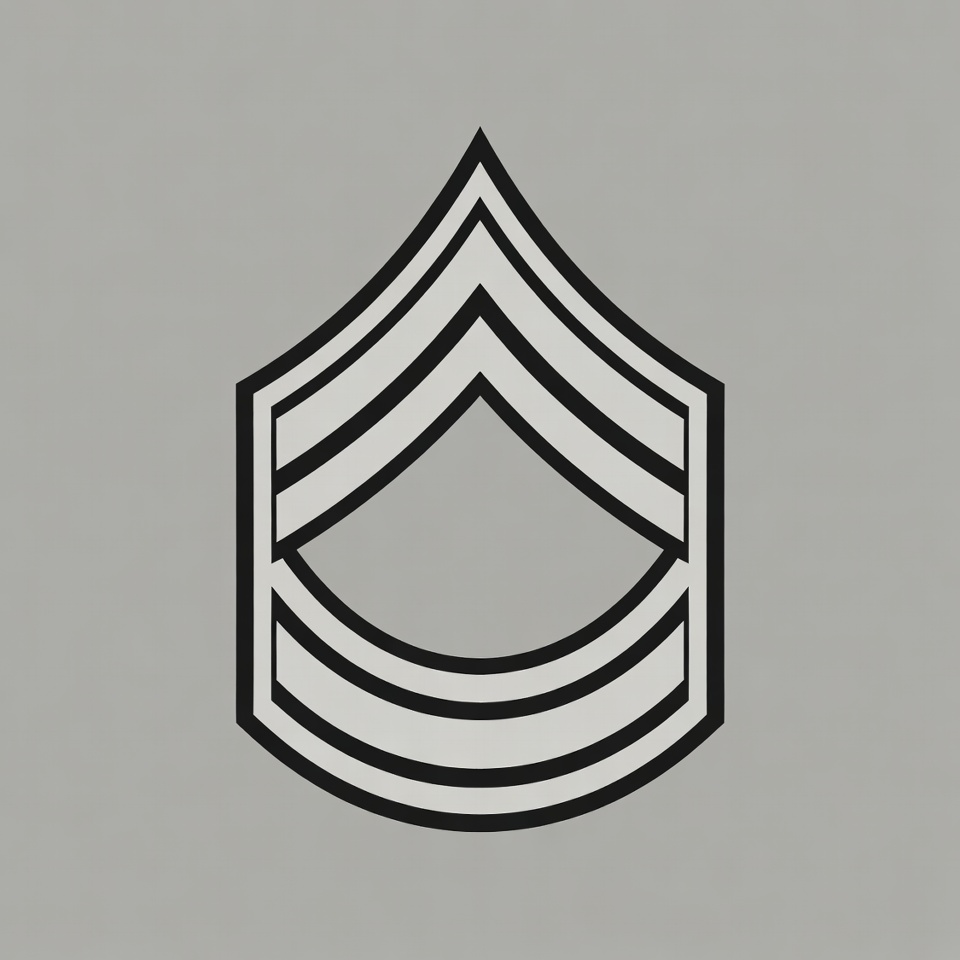 The design shows a sergeant rank insignia on a plain grey background. The emblem features distinct lines and shapes without extra details.