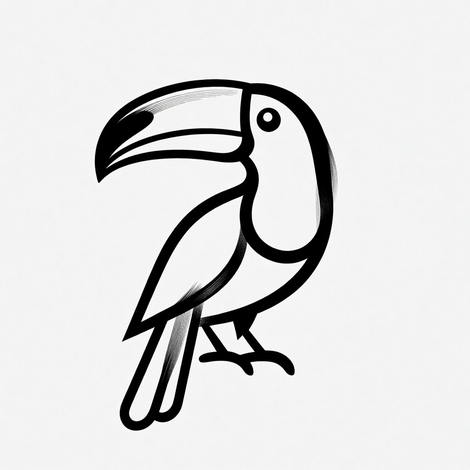 A simple drawing of a toucan bird with a prominent beak. The design focuses on the outline and basic shapes.