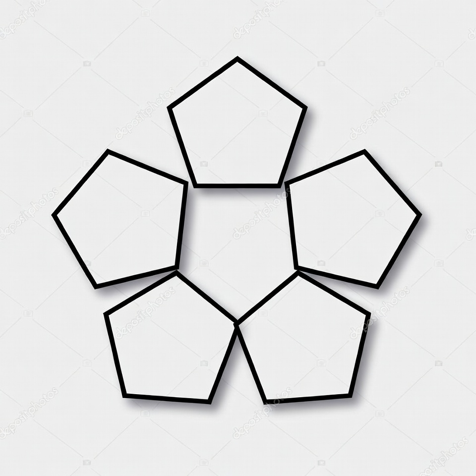 Five pentagons are arranged in a circular pattern. Each pentagon has a black outline and no fill color.