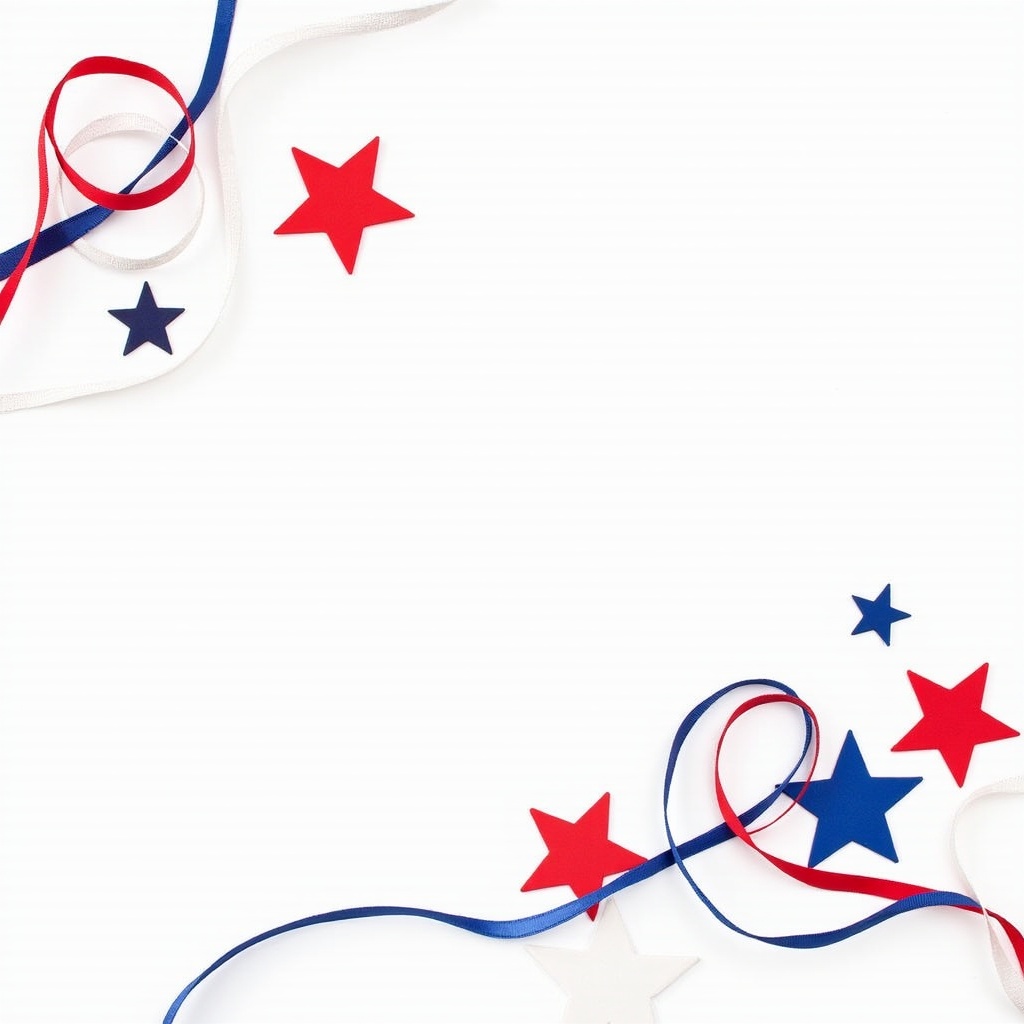 arrangement, background, blue, celebration, craft, creative, decoration, design, event, festive, geometric, holiday, patriotic, pattern, red, ribbons, simple, stars, surface, white