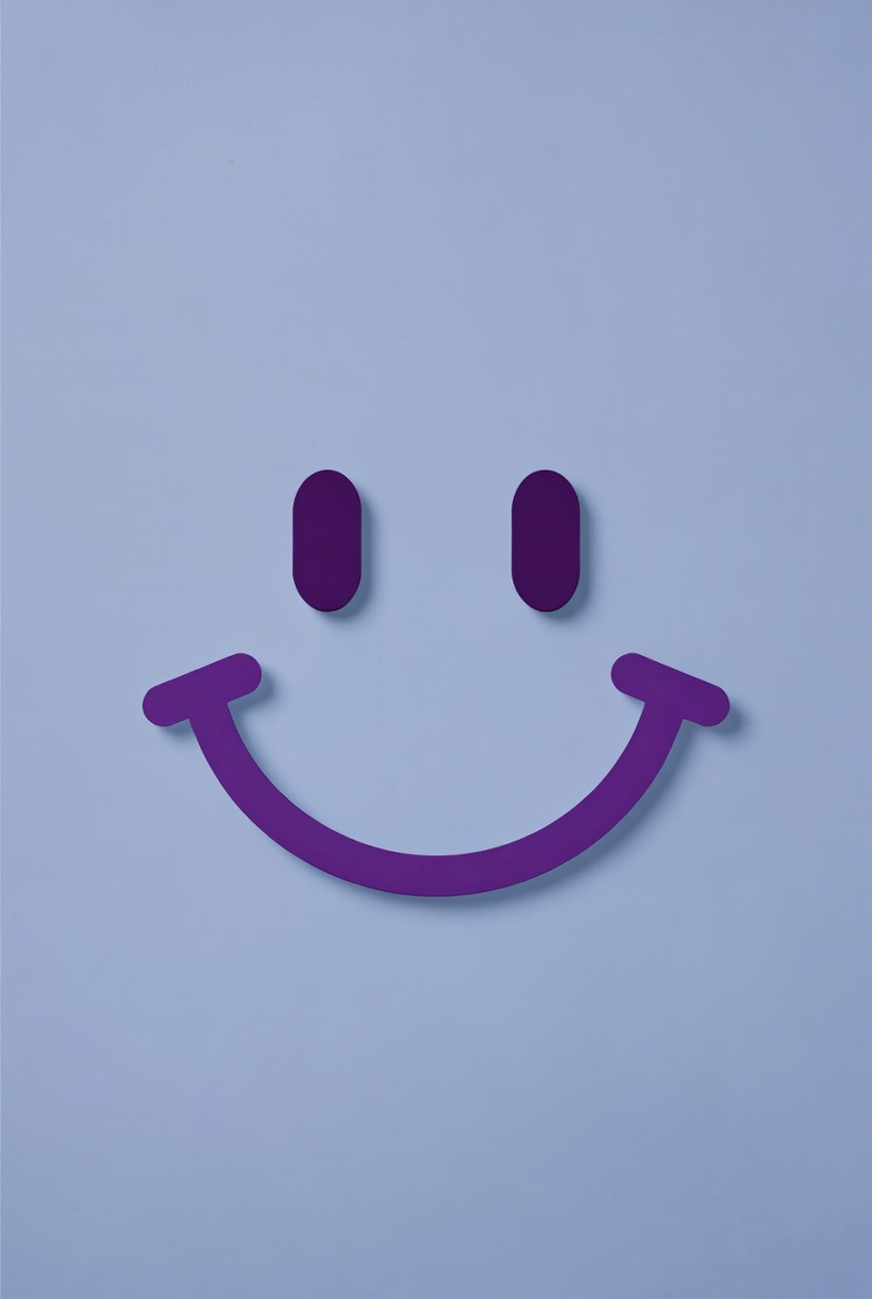 Purple smile design stands out on light blue background. The graphic emphasizes simplicity and cheerfulness in its shape and color.