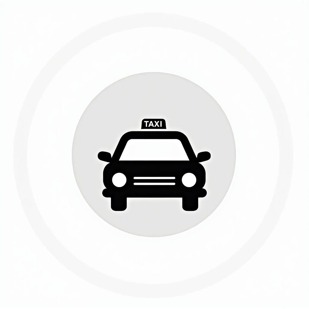 A black taxi icon is centered on a light gray background. The taxi has a light on top marked with the word taxi.