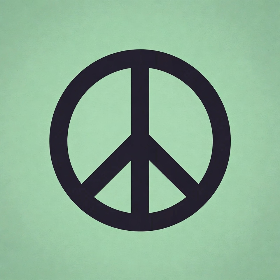 A large peace symbol is centered on a light green background. The design is simple and bold, emphasizing the importance of peace.