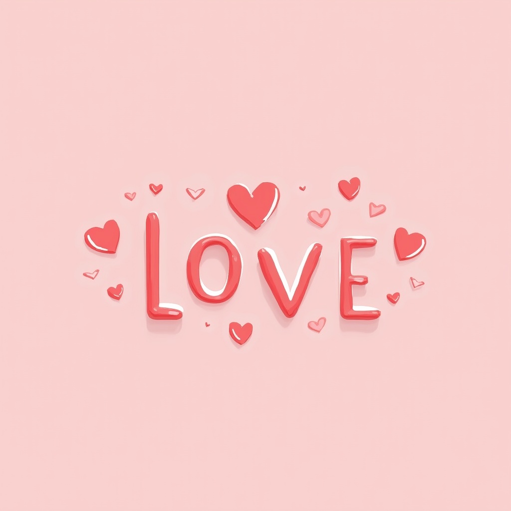 The design shows the word love in bright letters with small hearts around it on a light pink background. This art represents affection.