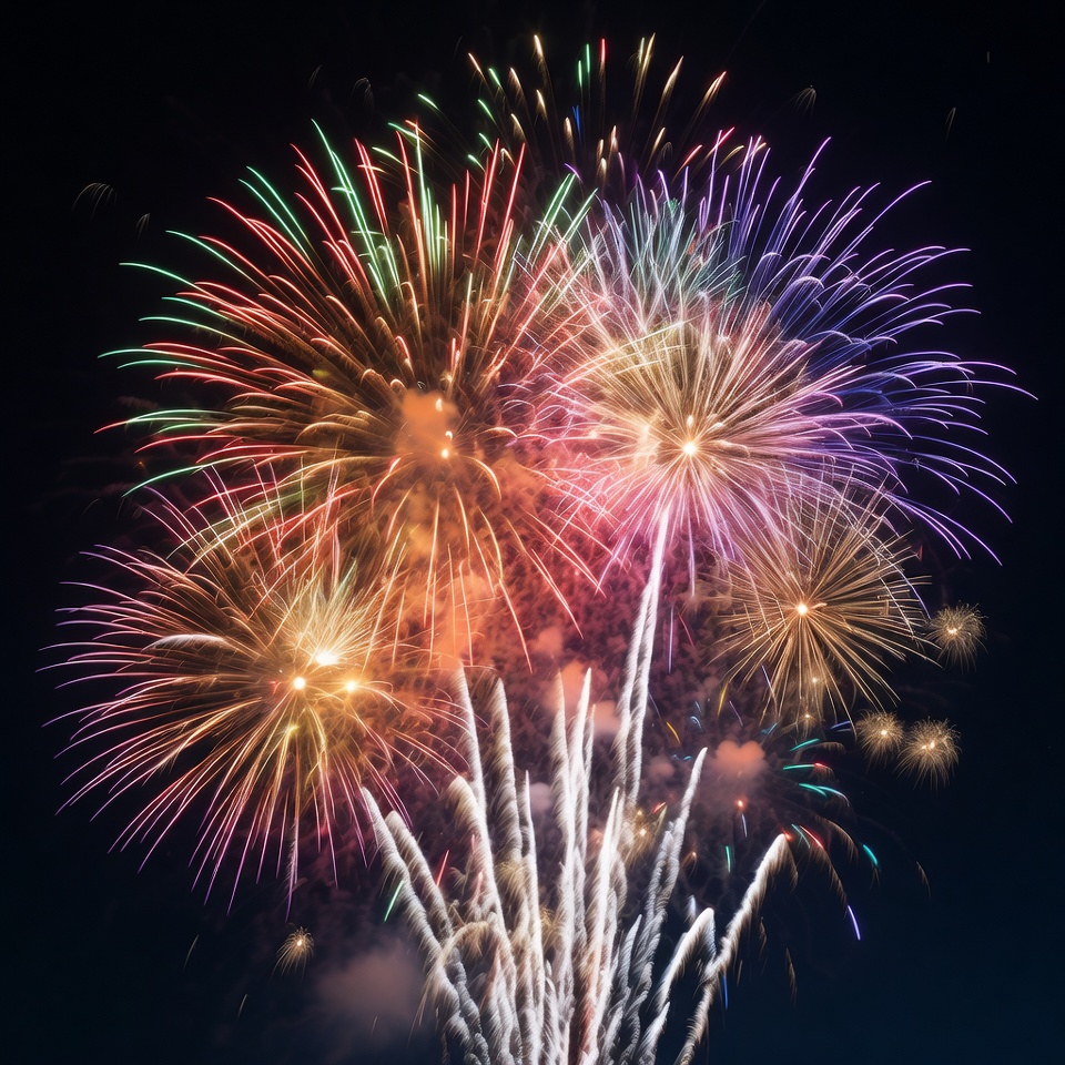 Fireworks light up the night sky in vibrant colors as people enjoy the show during a summer celebration in the city.