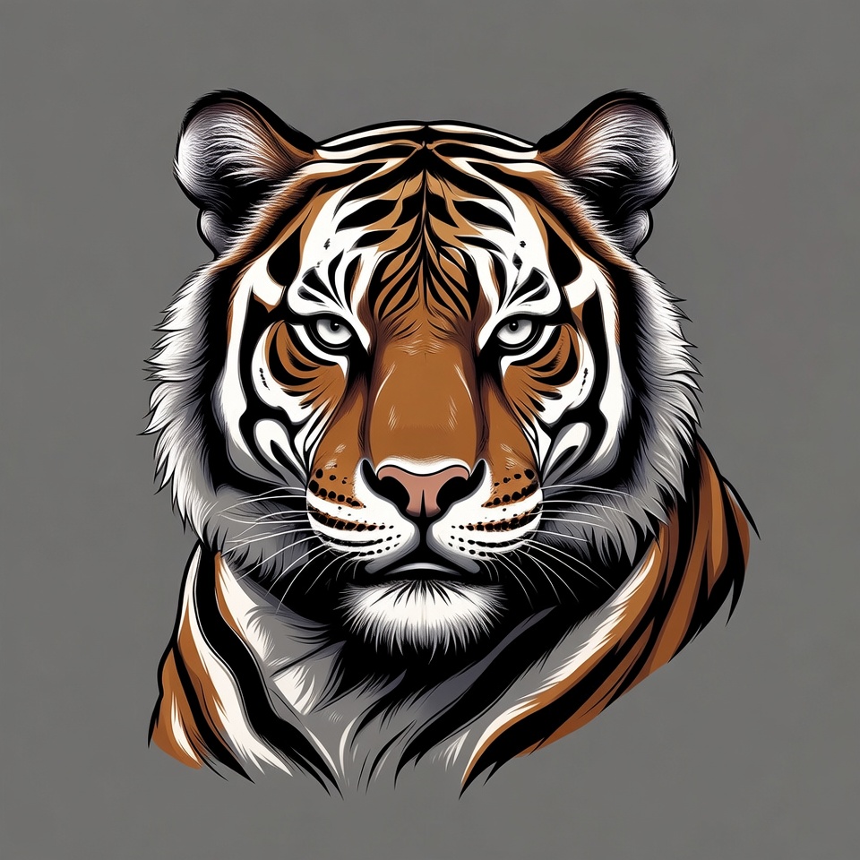 Tiger face illustration on gray background