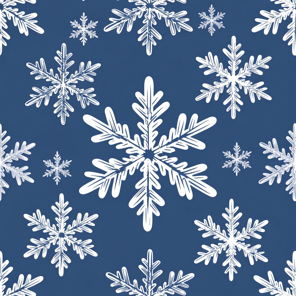 White snowflakes scatter across a blue background, creating a simple winter pattern. This design can be used for various seasonal items.