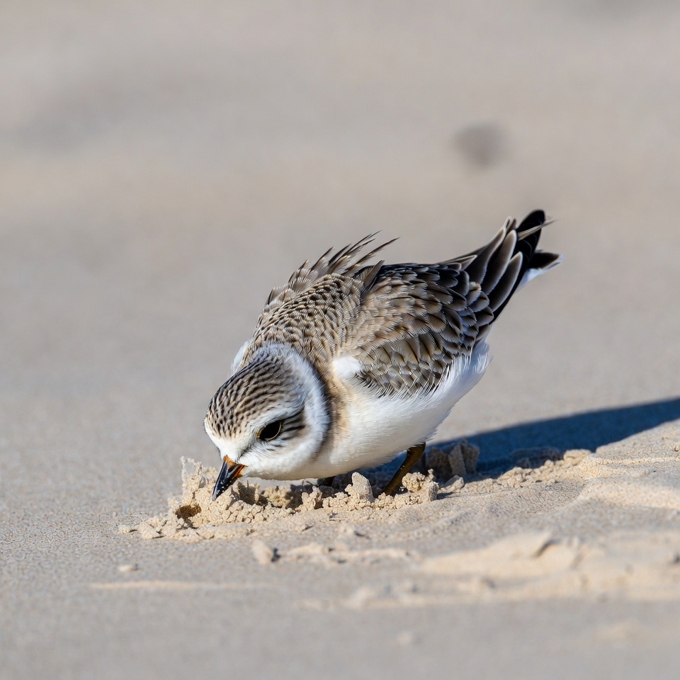animal, beach, bird, coastal, digging, food, foraging, ground, habitat, insect, nature, sand, sand dunes, sandpiper, seashore, shore, shorebird, small, sun, wildlife