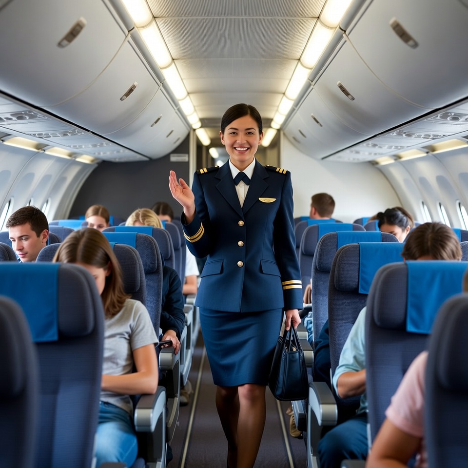 airline, airplane, aisle, aviation, boarding, cabin, flight crew, greeting, journey, members, passengers, seating, service, sky, smiling, transportation, travel, travelers, trip, uniforms