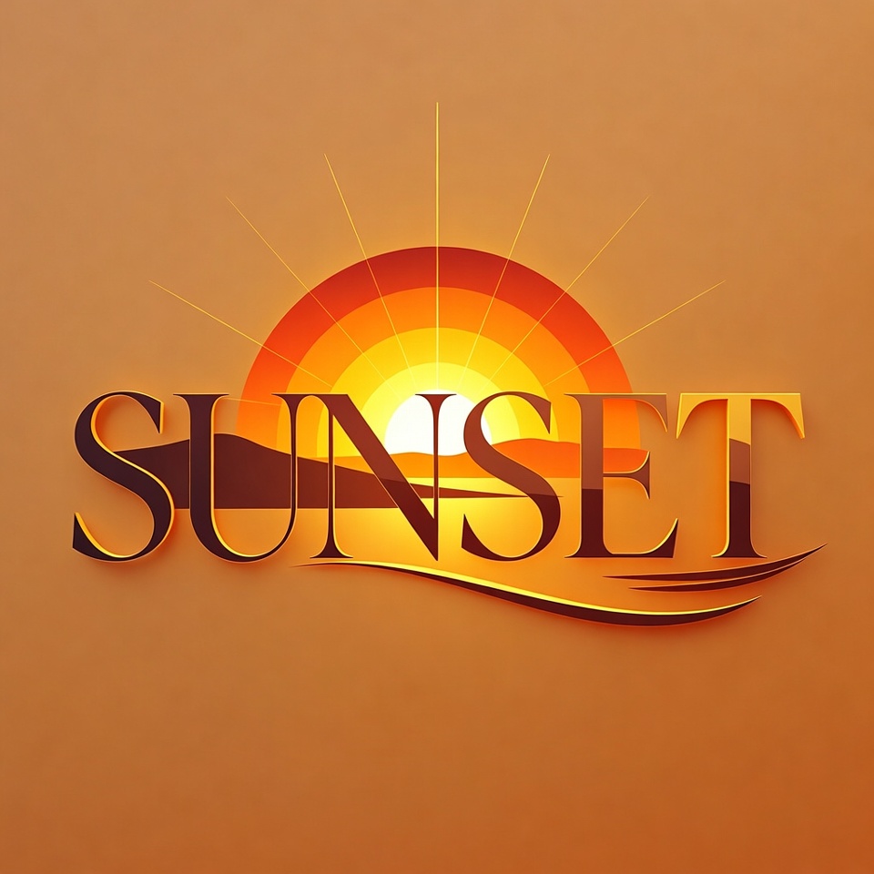 A sunset with warm colors fills the sky. The sun sets behind hills with waves below. The scene shows a beautiful view of nature at dusk.