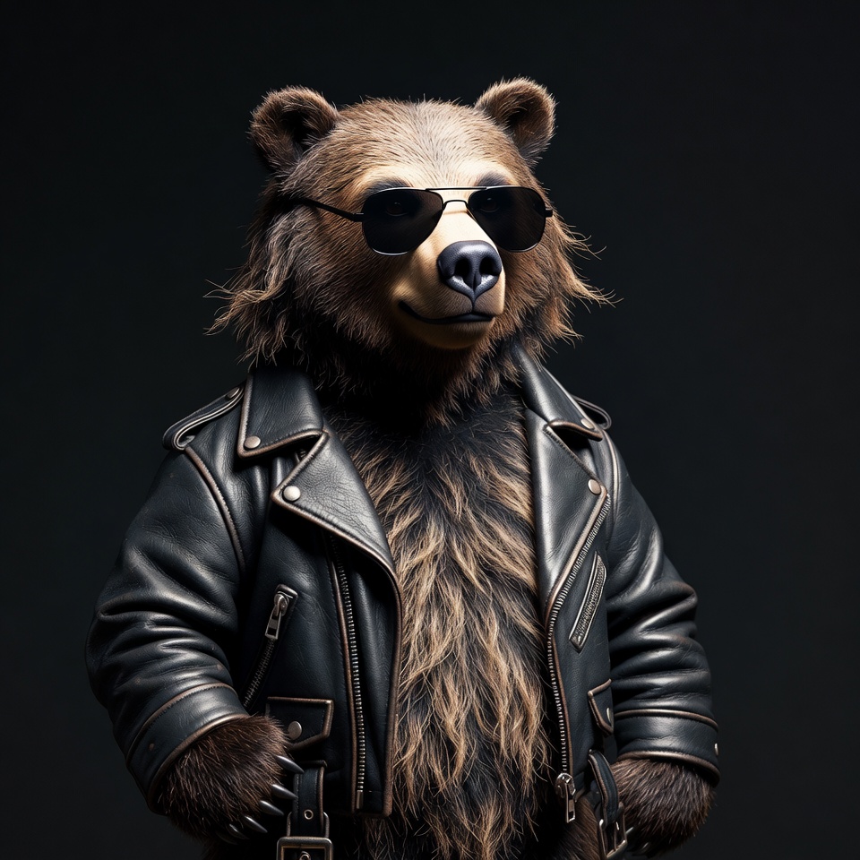 Bear dressed in leather with sunglasses