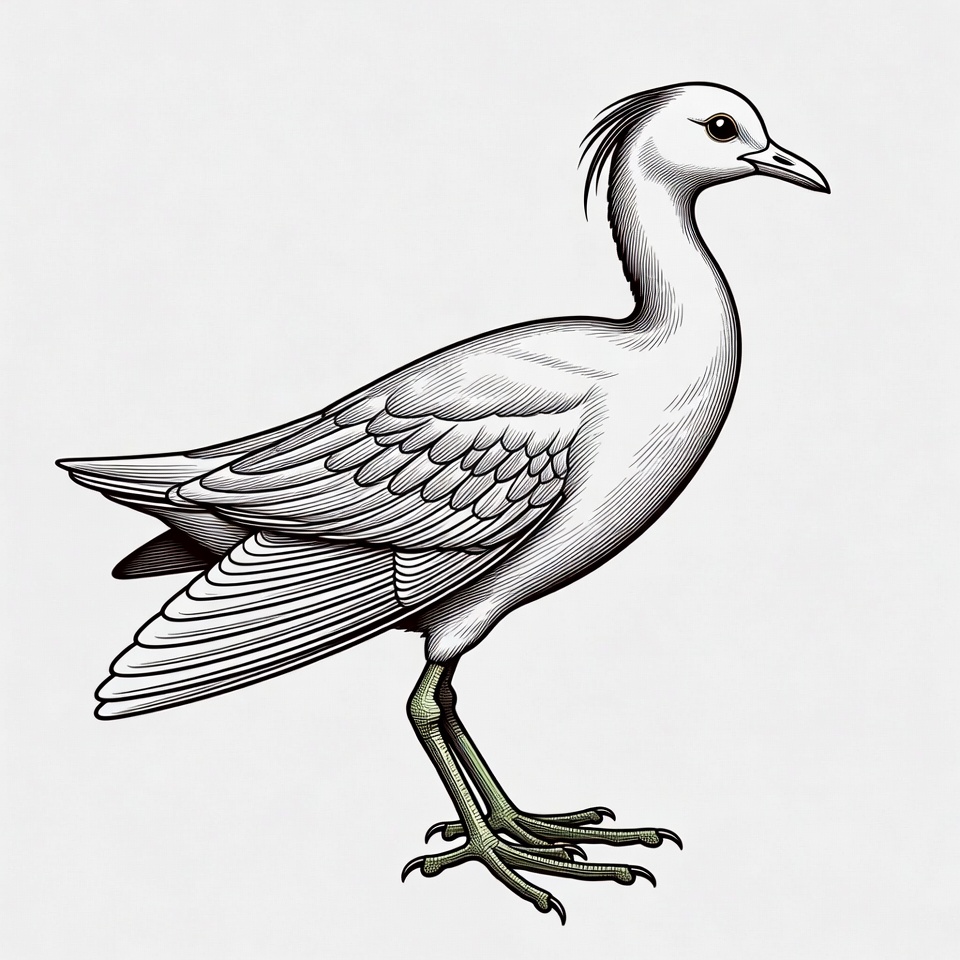 animal, artwork, avian, beak, bird, design, detail, drawing, feathers, illustration, legs, monochrome, nature, one leg, posture, profile, sketch, standing, wildlife, wings