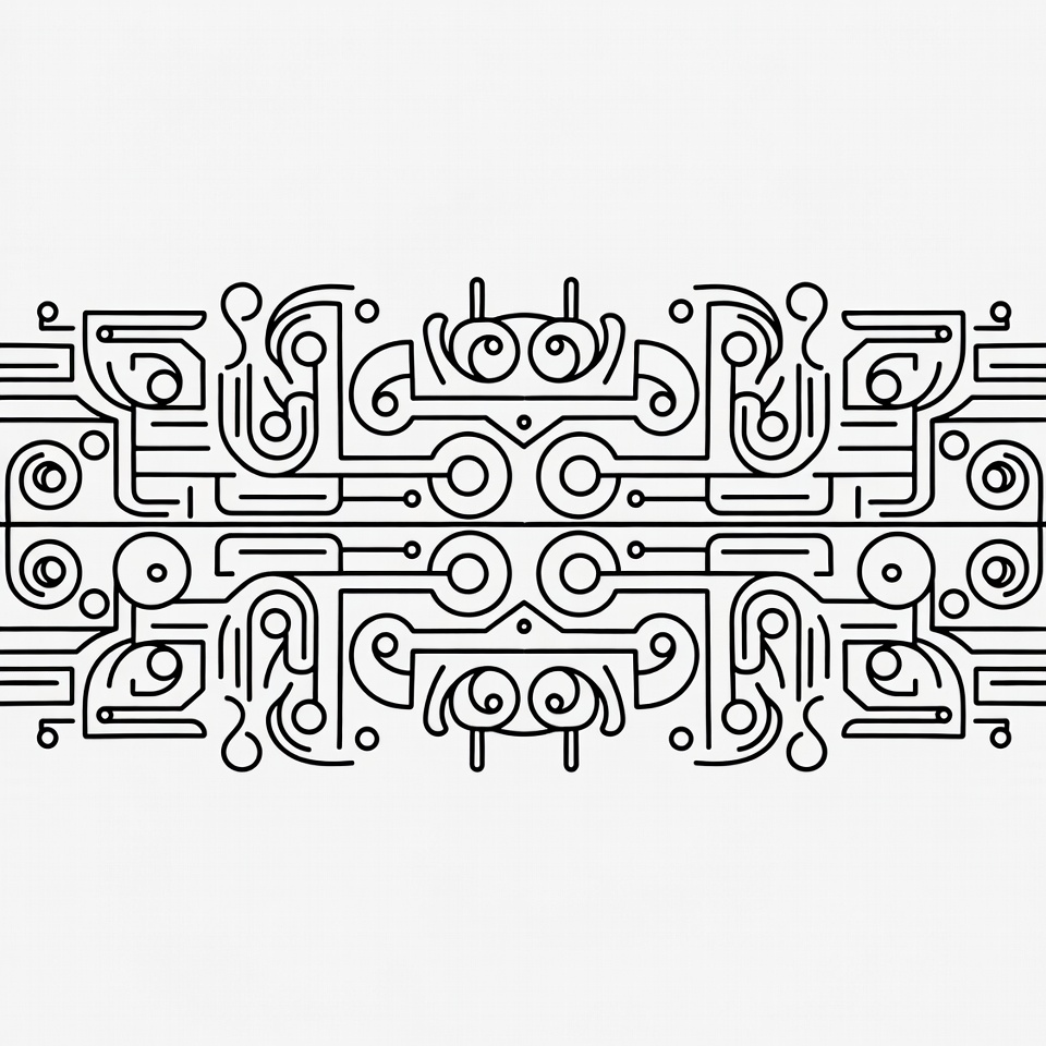 A pattern made of lines and shapes. It can be used for backgrounds or wall art in various spaces.
