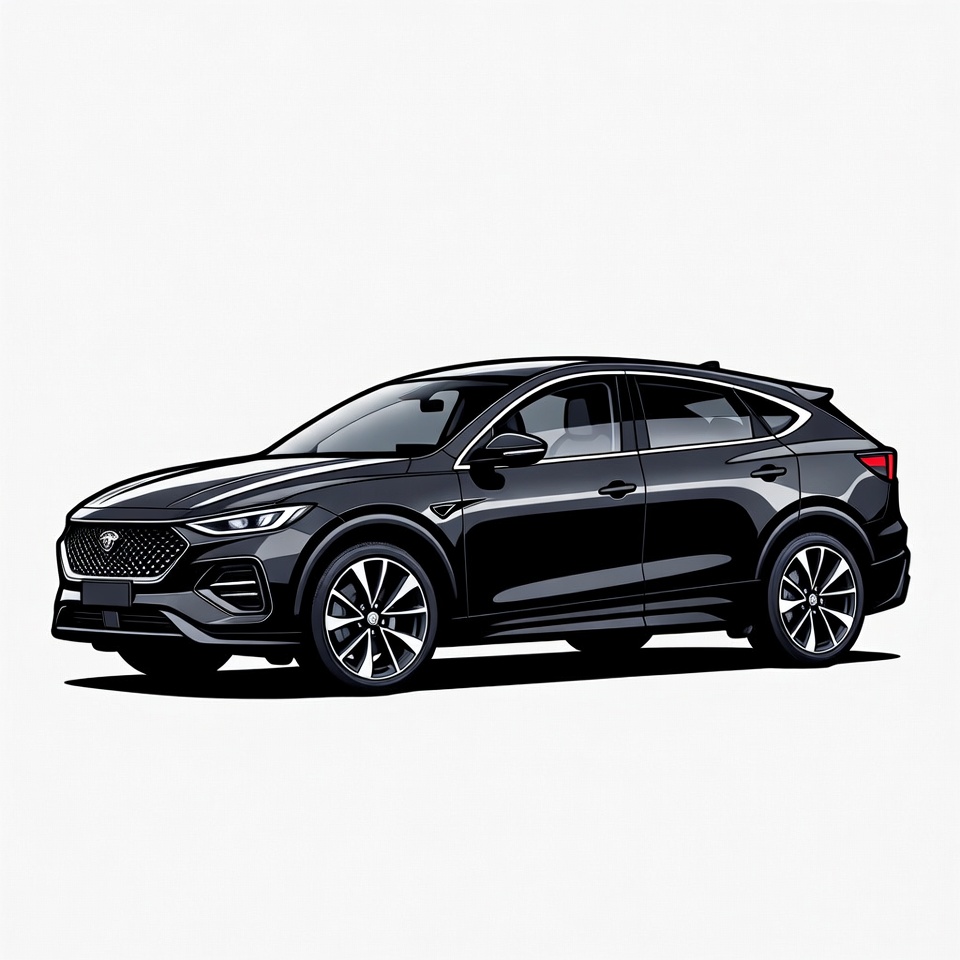 A black SUV sits on a plain white background. The vehicle shows a sporty design with sleek lines and modern features.