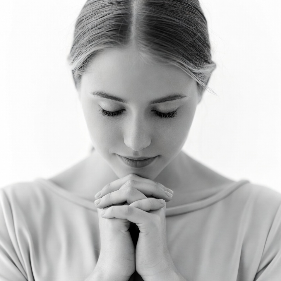 calmness, close-up, contemplation, emotion, expression, focus, gesture, hands, light, mindfulness, peace, portrait, pose, prayer, reflection, silence, simplicity, spirituality, thought, woman