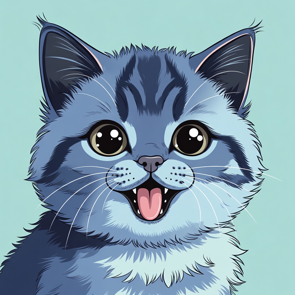 animal, art, blue, cartoon, cat, character, cute, design, domestic, expression, eyes, face, fun, fur, happy, illustration, pet, playful, smile, whiskers