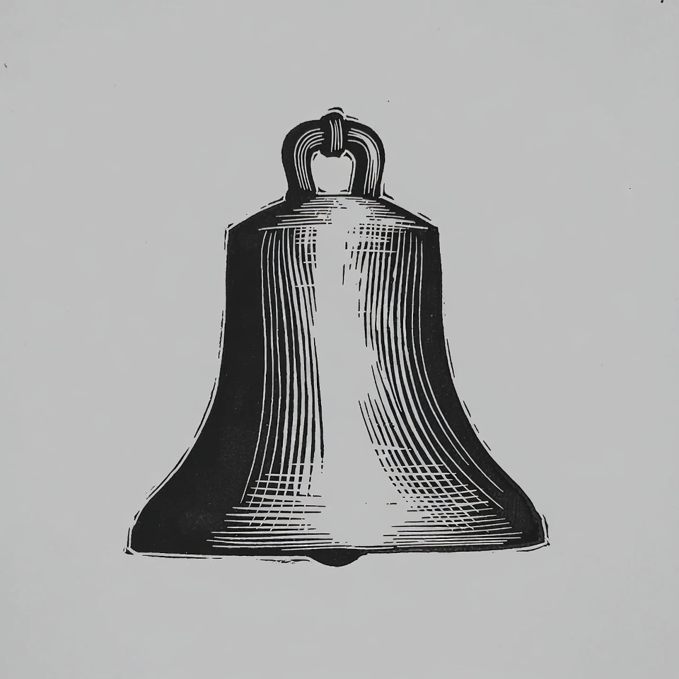 art, bell, clapper, classic, concept, design, drawing, graphic, illustration, lines, metal, object, outline, pattern, shape, silhouette, sketch, sound, texture, vintage