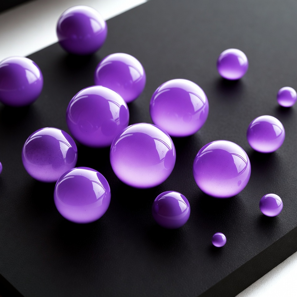 Purple glass spheres on dark surface