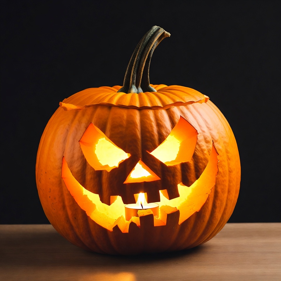 Carved pumpkin with candlelight glow