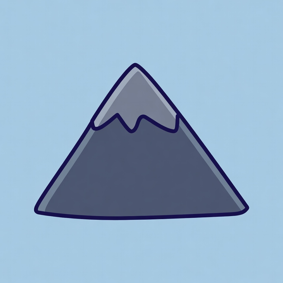 A mountain shape is drawn in a simple style on a light blue background. The mountain has snow on top and is not detailed.