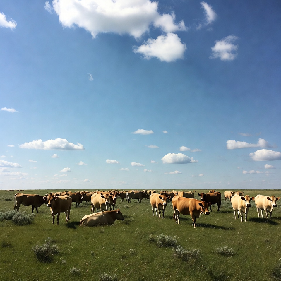 agriculture, animals, blue sky, clouds, cows, environment, farm life, farmland, field, grass, grazing, herd, landscape, livestock, nature, outdoor, pasture, peaceful, rural, sunshine