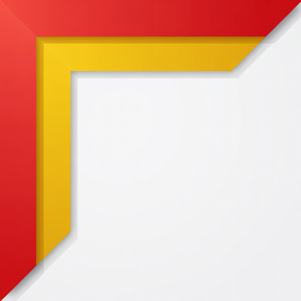 A geometric design features bold red and yellow colors on a white background. The shapes create a striking visual contrast that stands out.