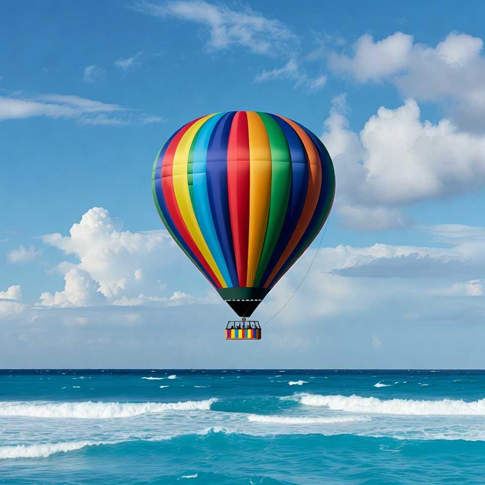 Colorful hot air balloon over ocean