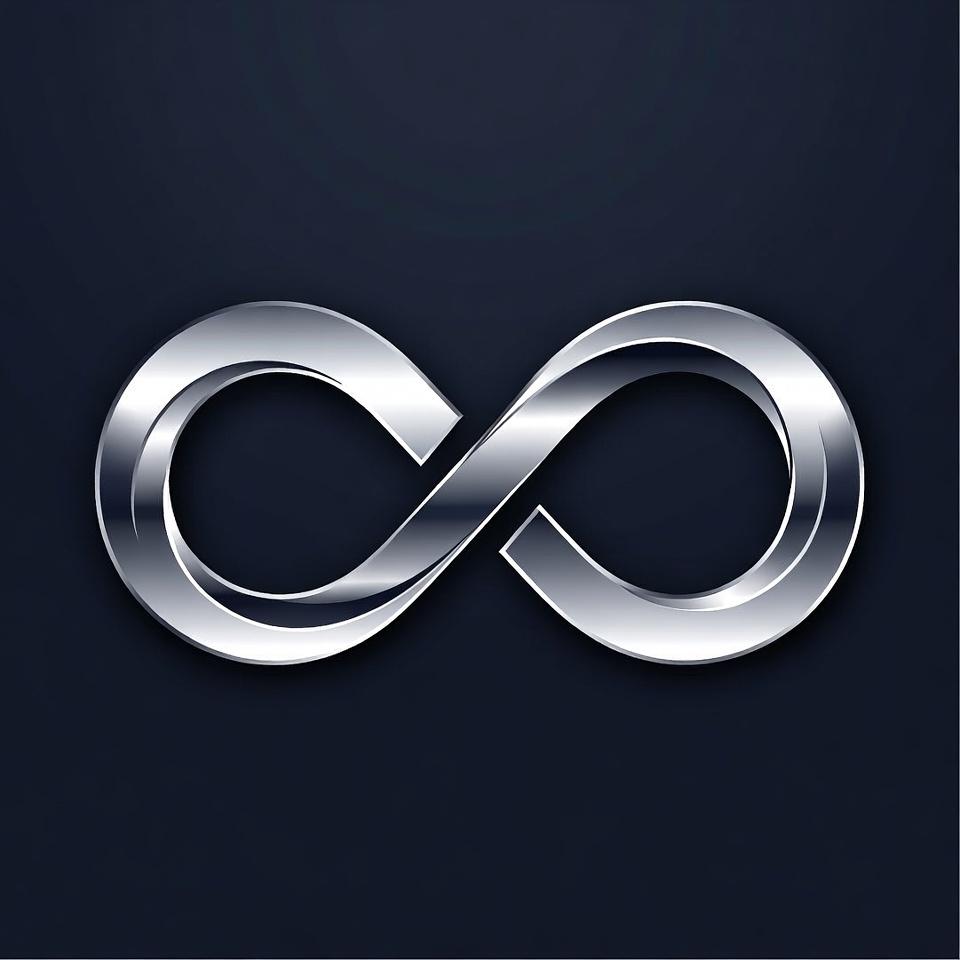 A shiny infinity symbol appears on a dark surface. The design represents endless possibilities and continuity in a modern style.