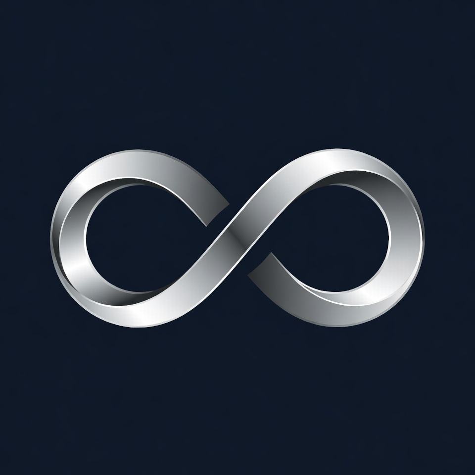 A silver infinity symbol rests on a dark background. The design features smooth curves connecting seamlessly.