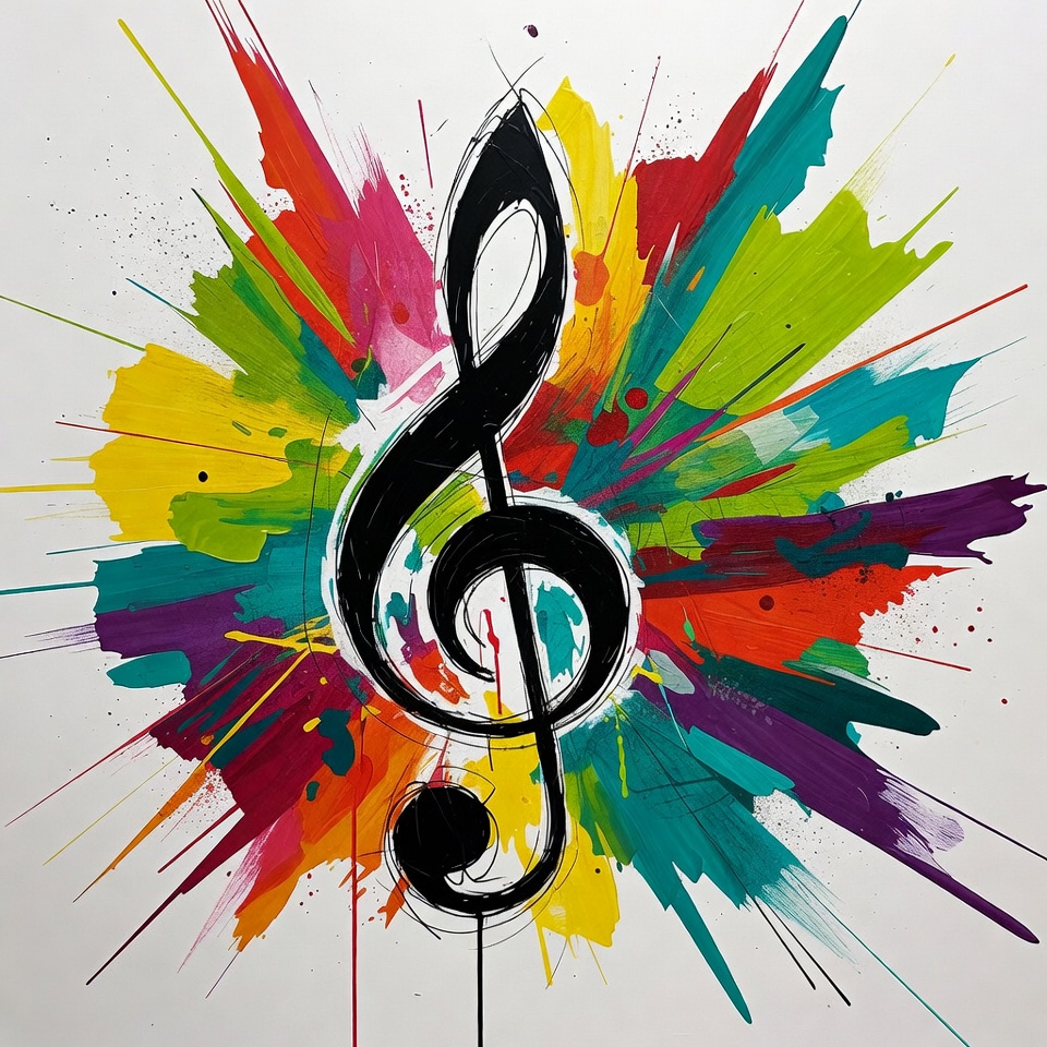 abstract, art, artwork, canvas, colors, creative, design, expression, graphic, melody, modern, music, note, paint, paintbrush, rhythm, sound, splash, symbol, wall
