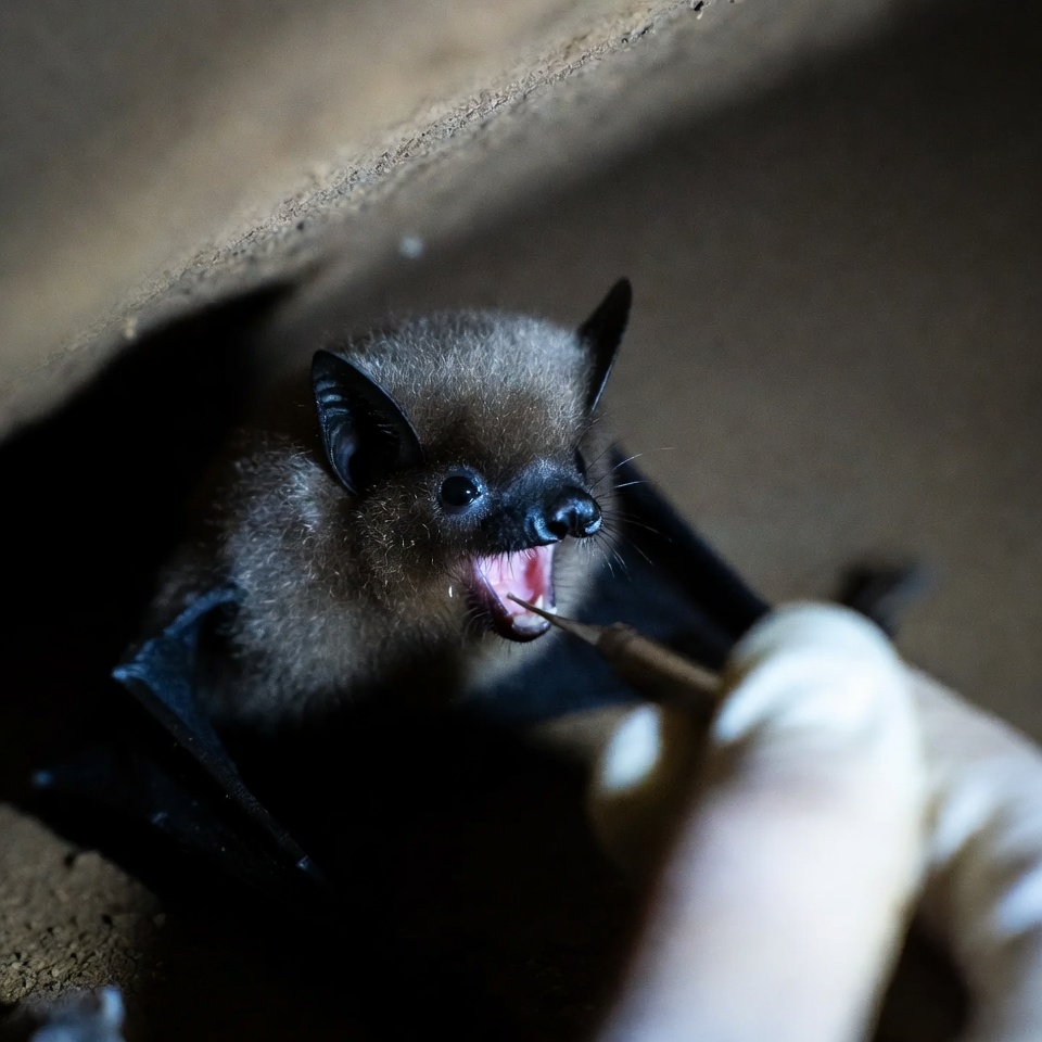 animal, bat, biology, care, cave, conservation, conservationist, dark, environment, feeding, habitat, hand, mammal, nature, nocturnal, research, small creature, tool, wildlife, wildlife science
