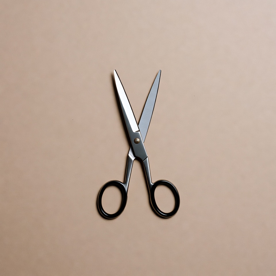 Scissors are placed on a flat, light-colored surface in a simple arrangement. The blades are open, ready for use.