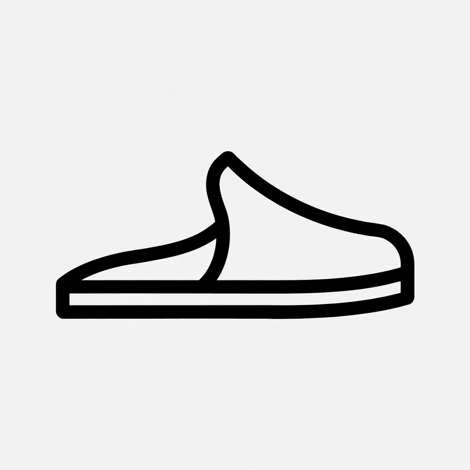 A basic outline of a slipper shows a casual footwear style, focusing on its simple shape and open design for comfort.