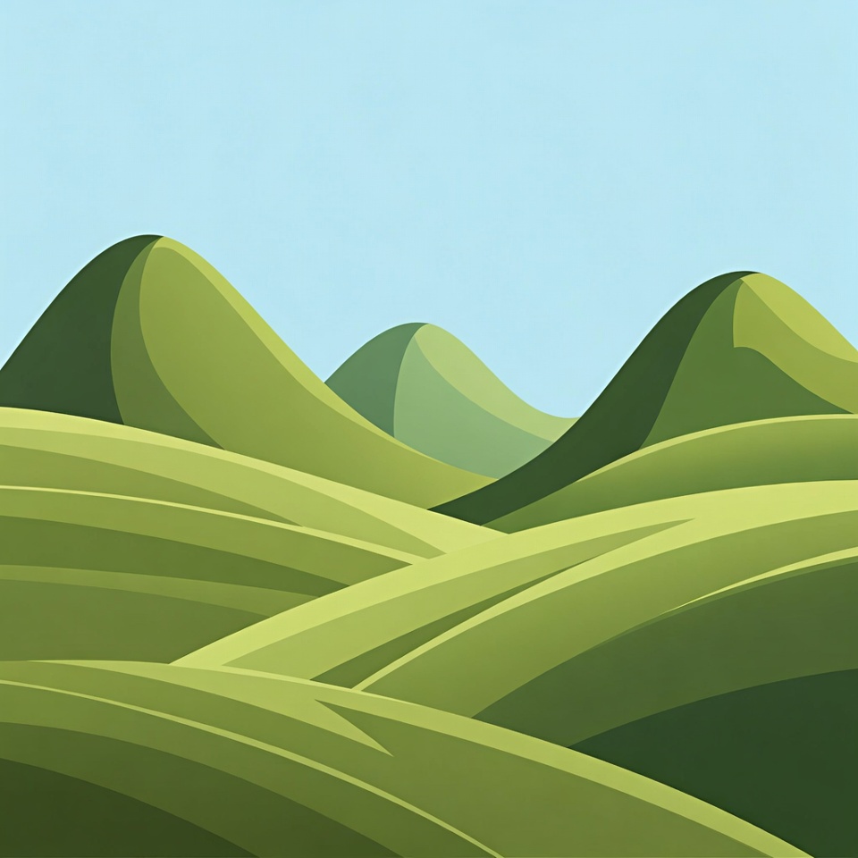 backdrop, blue sky, clear weather, day, environment, grass, green hills, growth, hillsides, landscape, natural beauty, nature, outdoor, outdoor area, peaceful scene, rolling hills, scenery, slopes, summer, terrain
