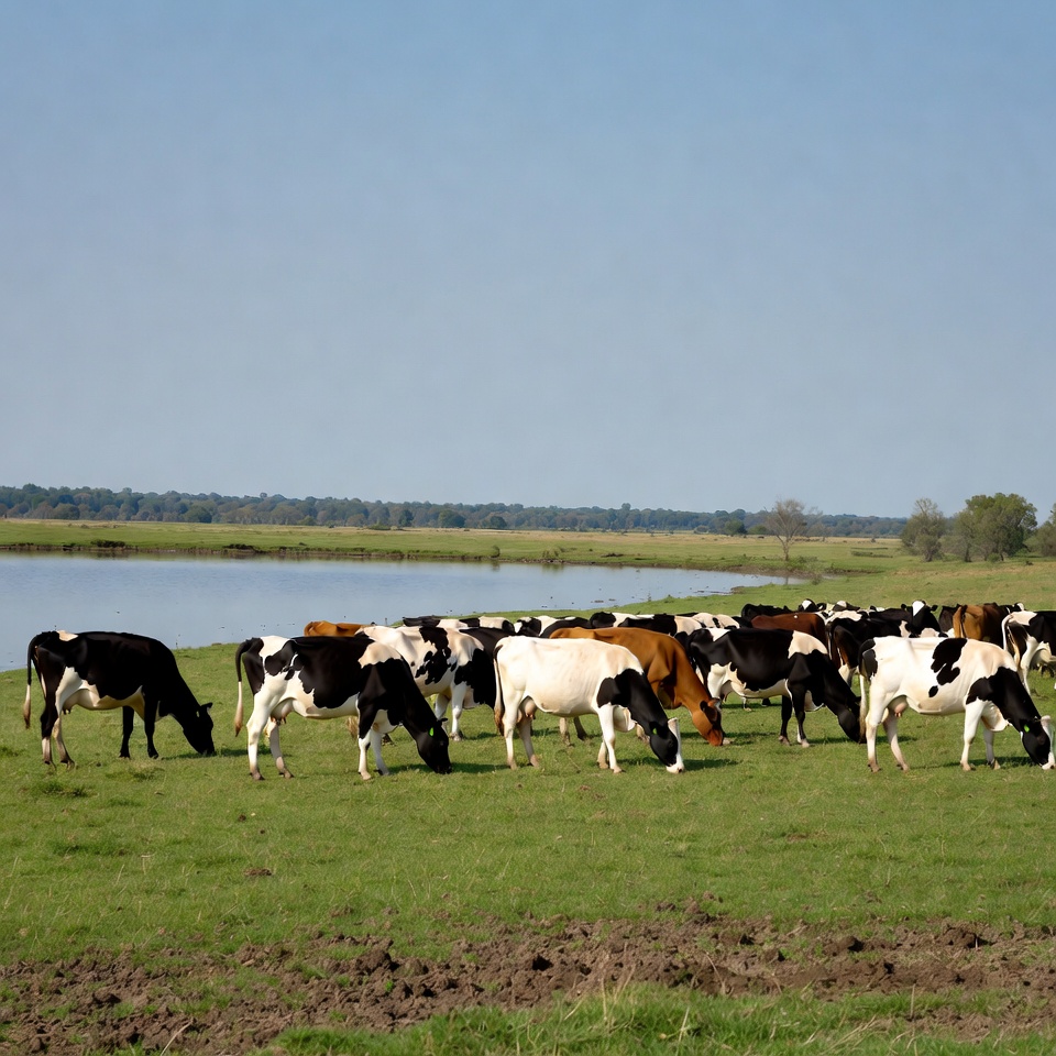 agriculture, animals, country, cows, day, environment, farm, field, grass, grazing, herd, landscape, milk, nature, pasture, rural, sky, summer, water, wildlife