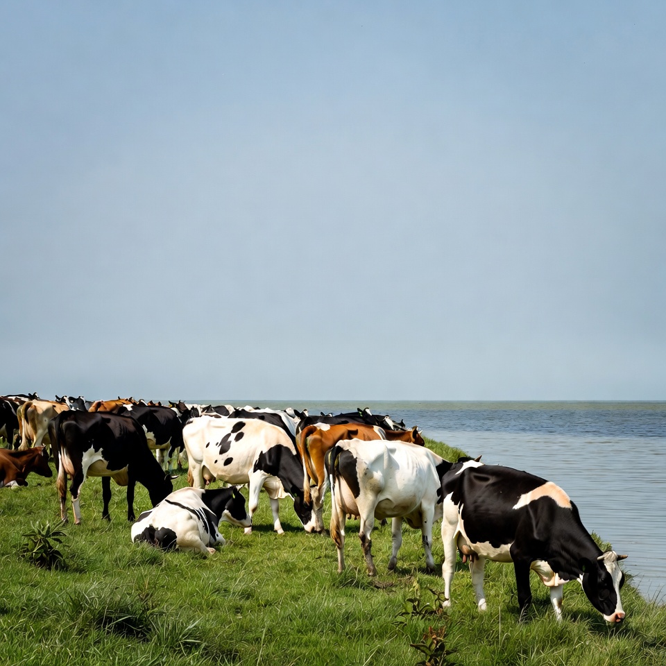 agriculture, animals, countryside, cows, environment, farm, feeding, grass, grazing, herd, landscape, livestock, nature, outdoors, pasture, peaceful, river, rural, sky, water