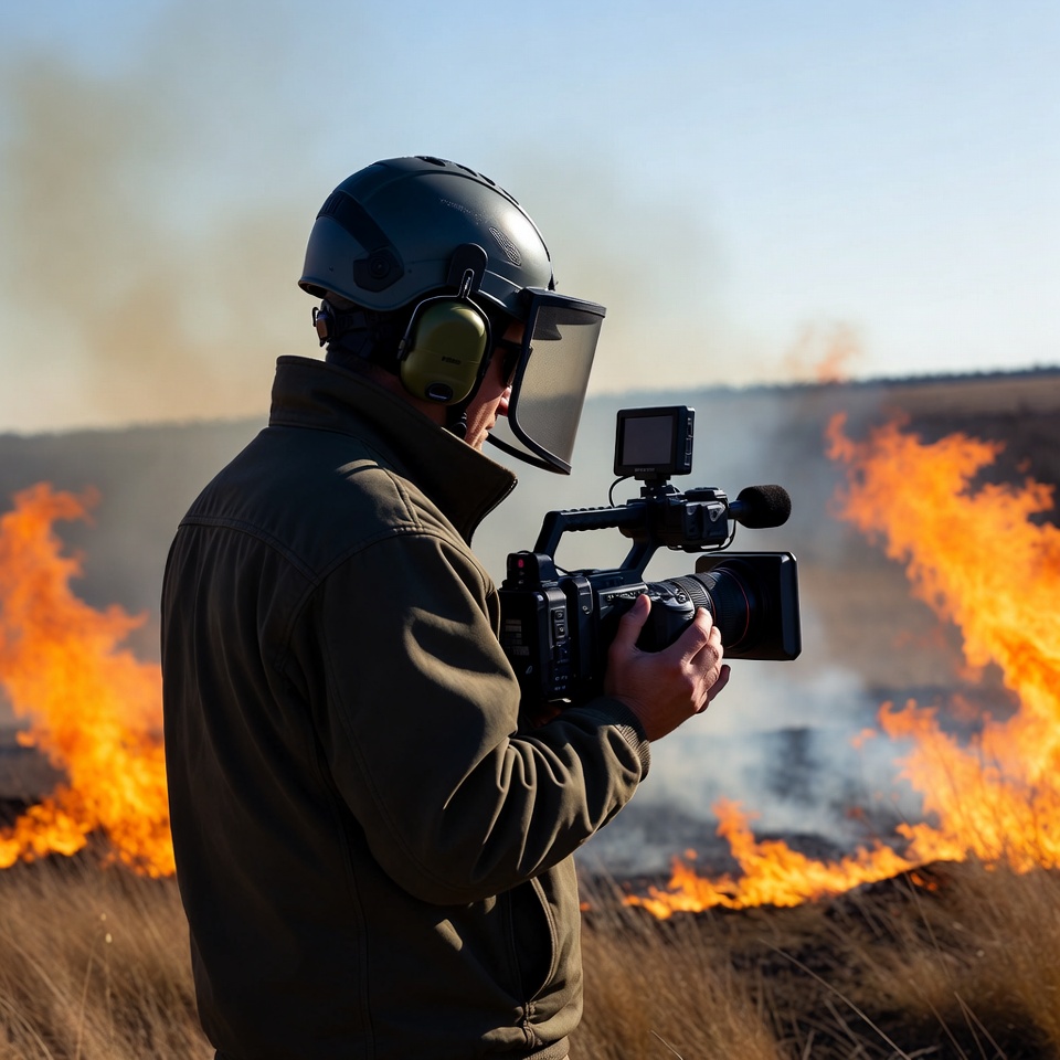 Filming wildfire in open field