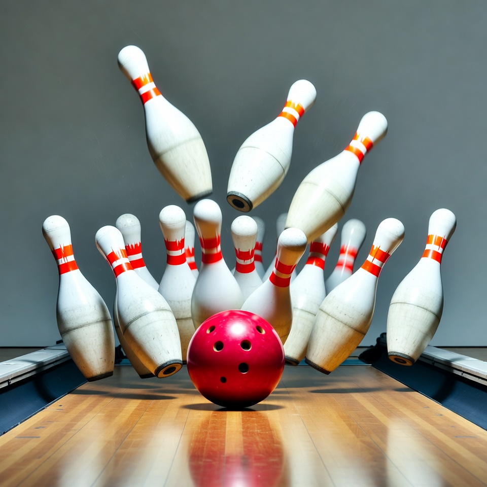 Bowling strike in action during game