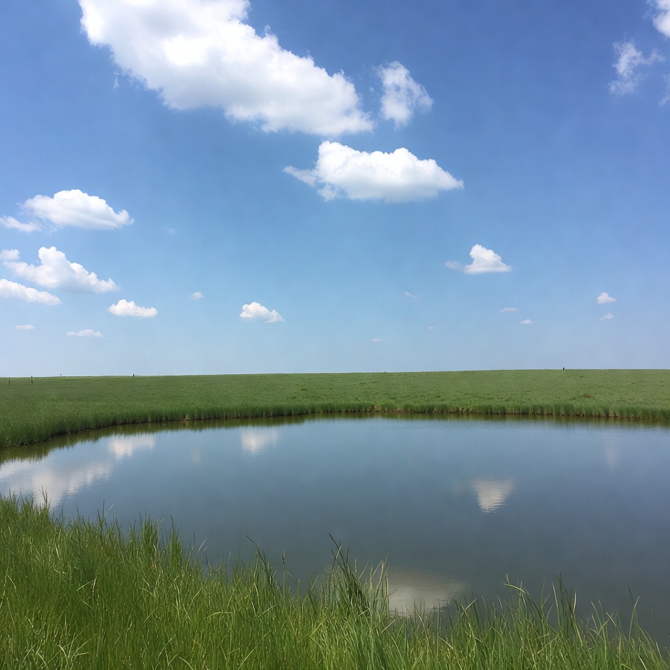 blue, clouds, environment, field, grass, green, horizon, landscape, nature, outdoors, pond, reflection, rural, scenery, sky, summer, sunlight, tranquility, water, wetlands