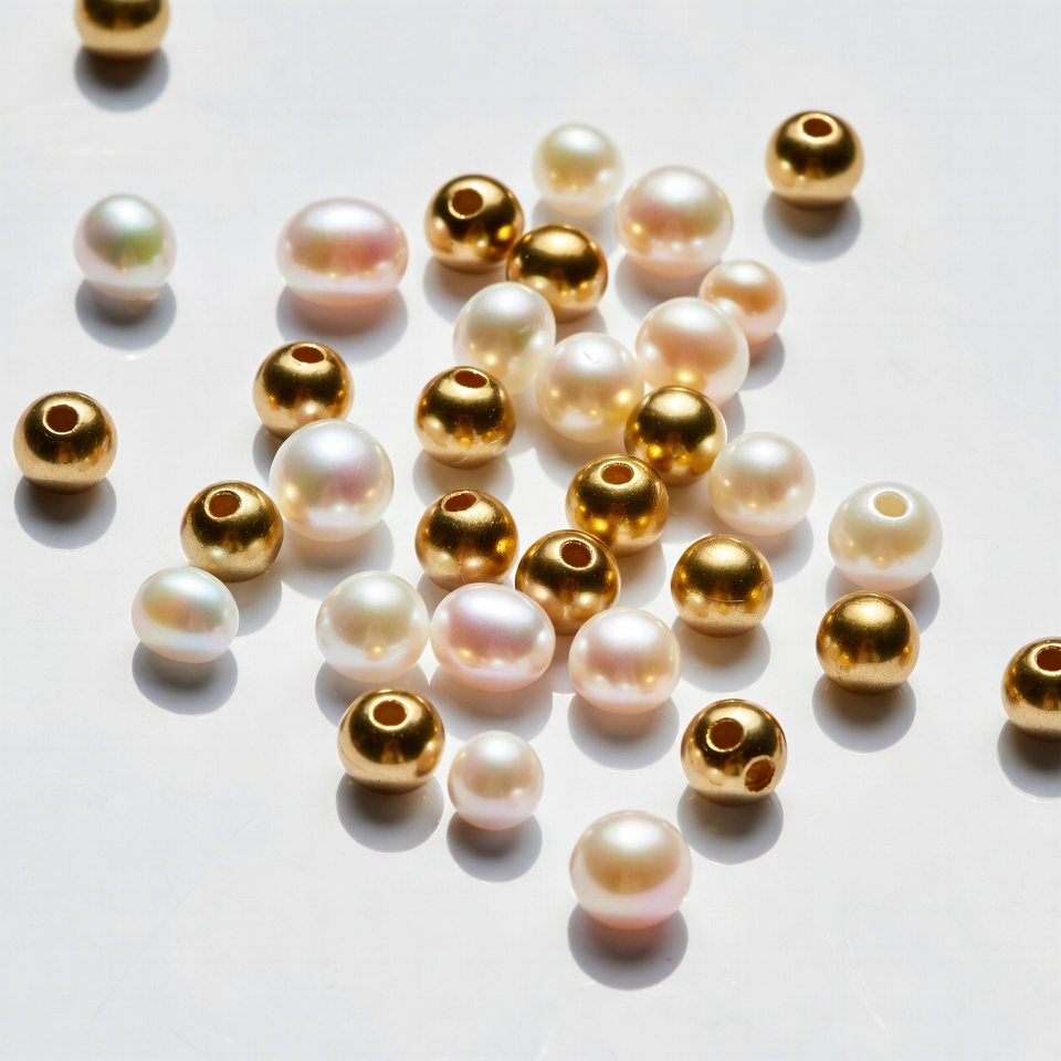 DIY, accessories, art, beads, color, crafting, creative, decorative, designs, gold beads, handmade, jewelry, materials, patterns, round, shining, small, supplies, tools, white beads