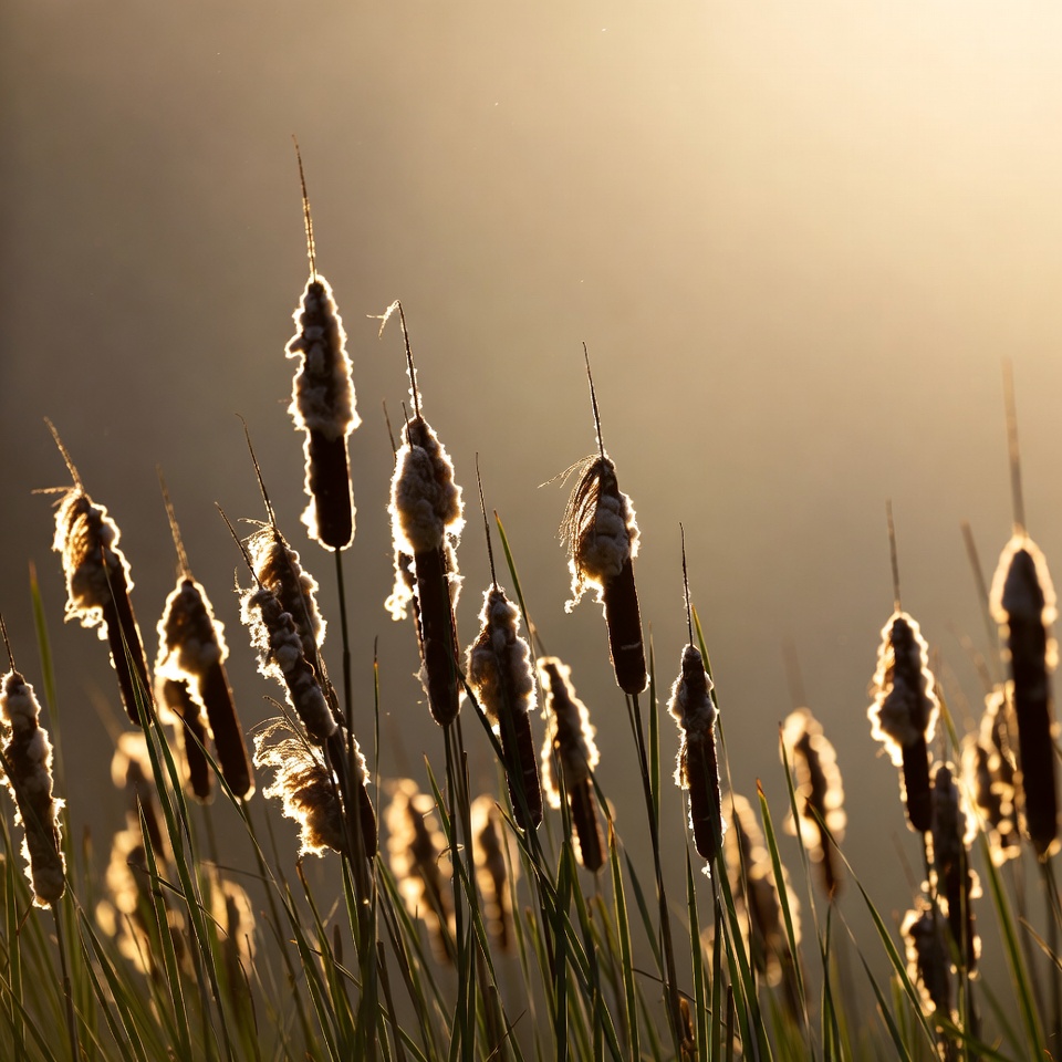Sunlight on tall grasses at dusk